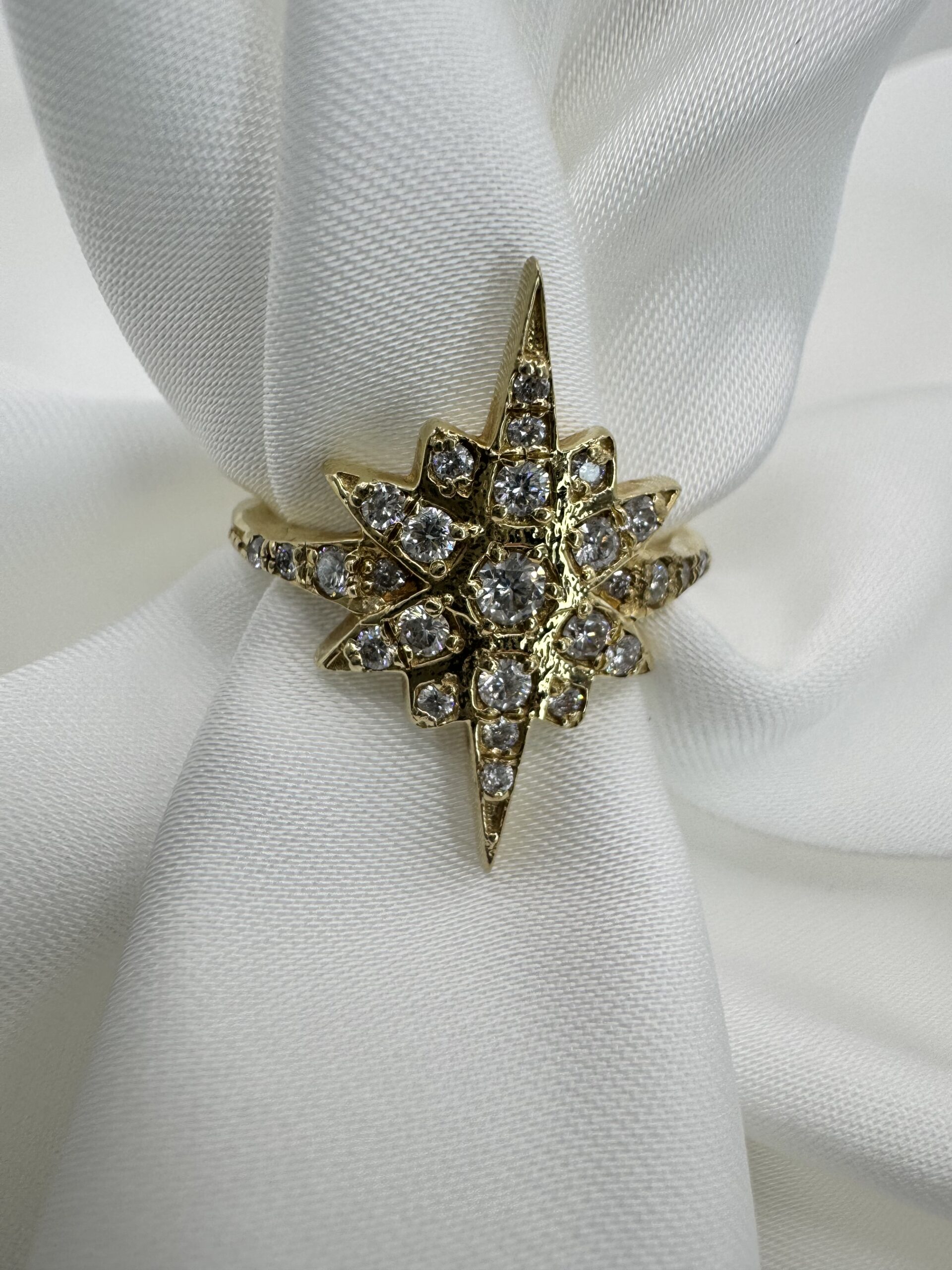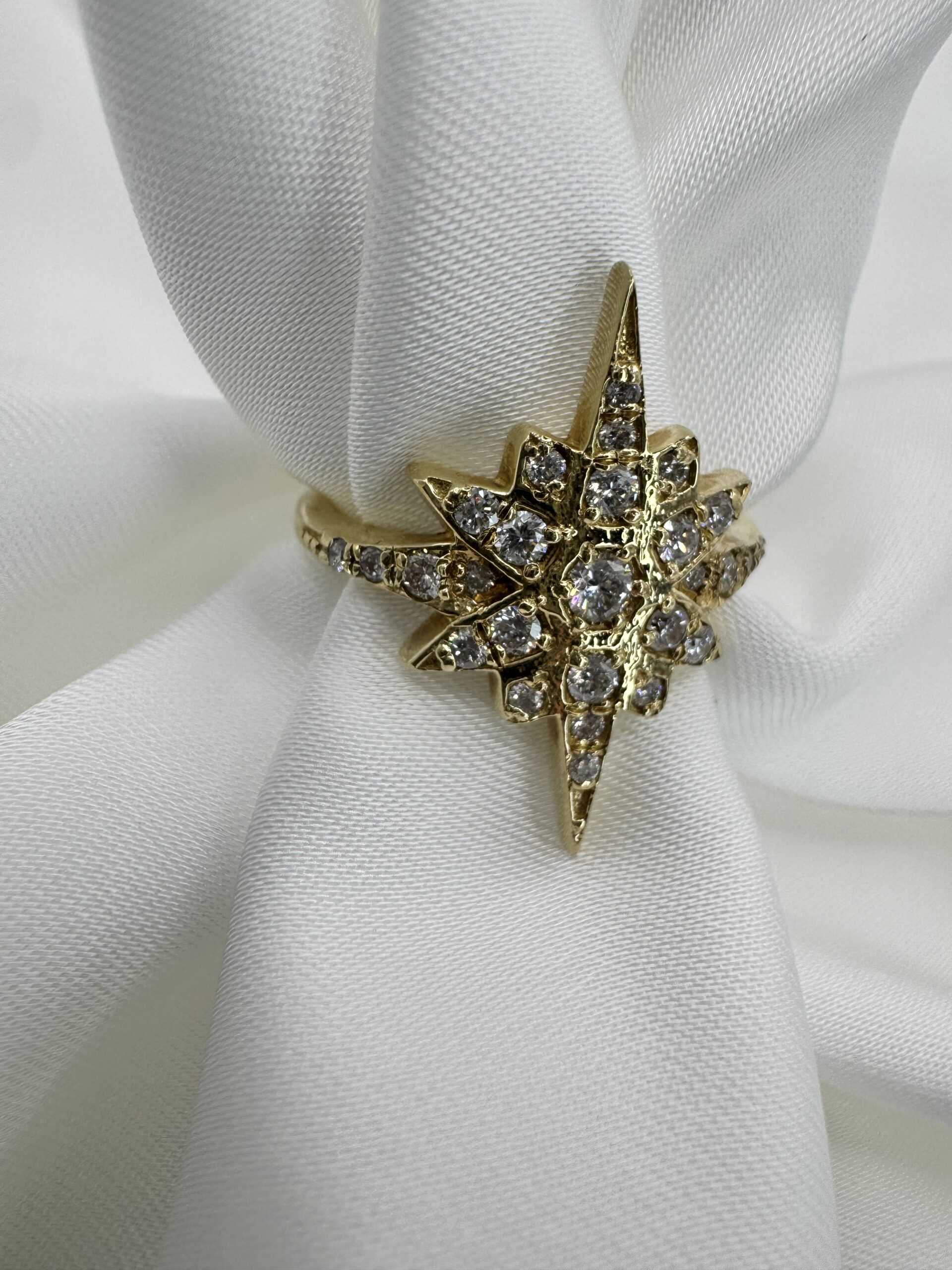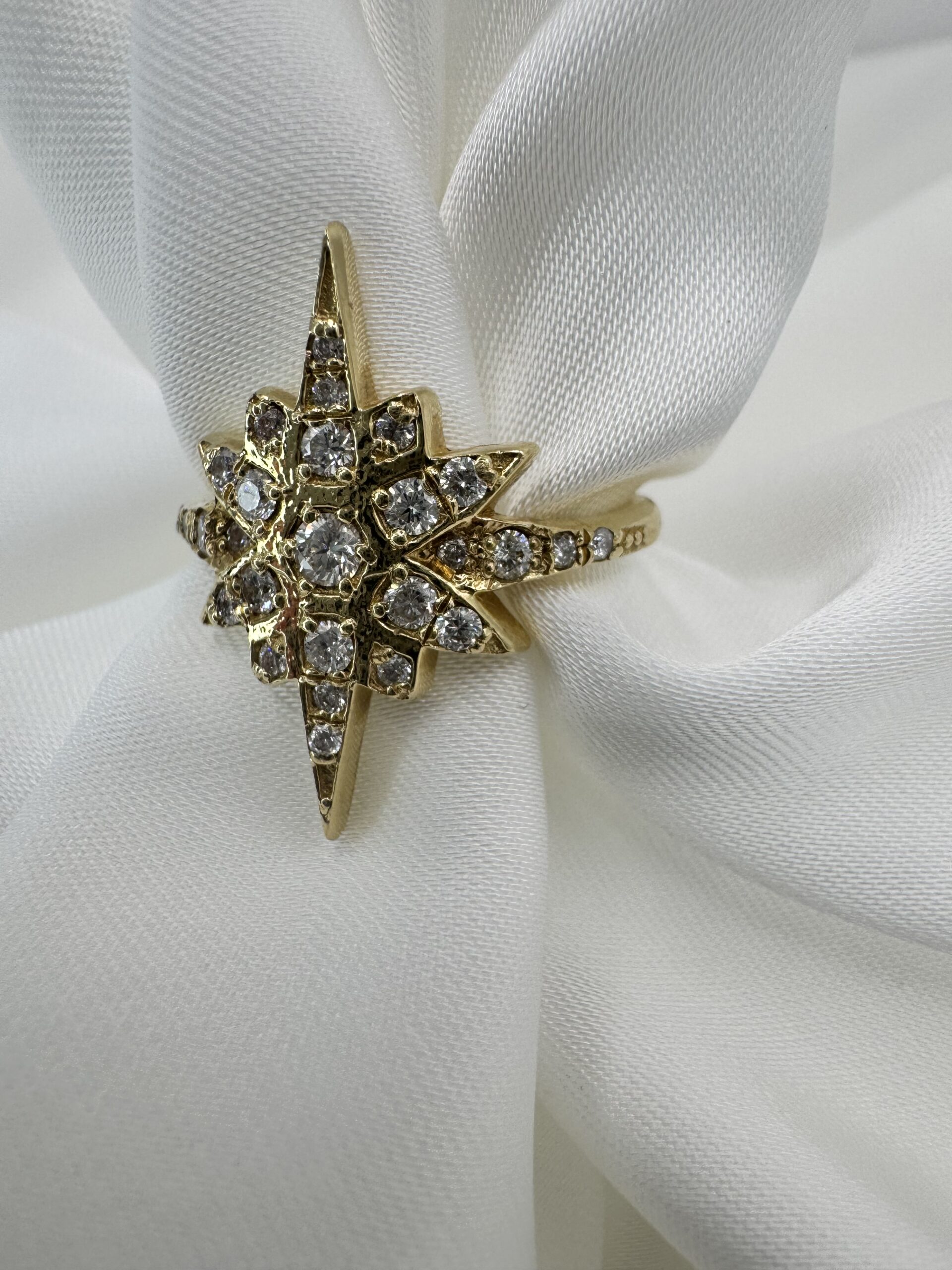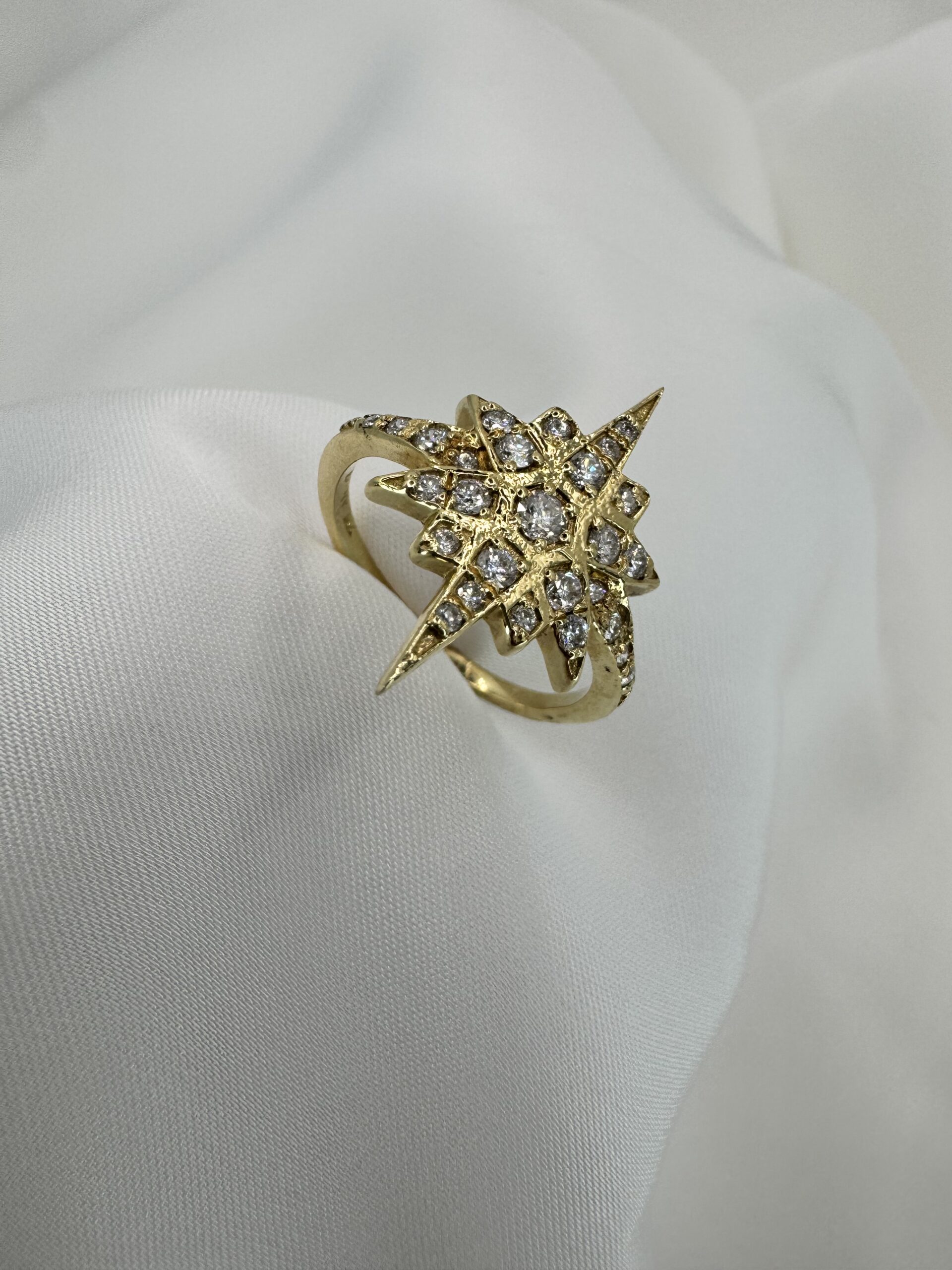 טבעת זהב בצורת כוכב עם יהלומים טבעיים