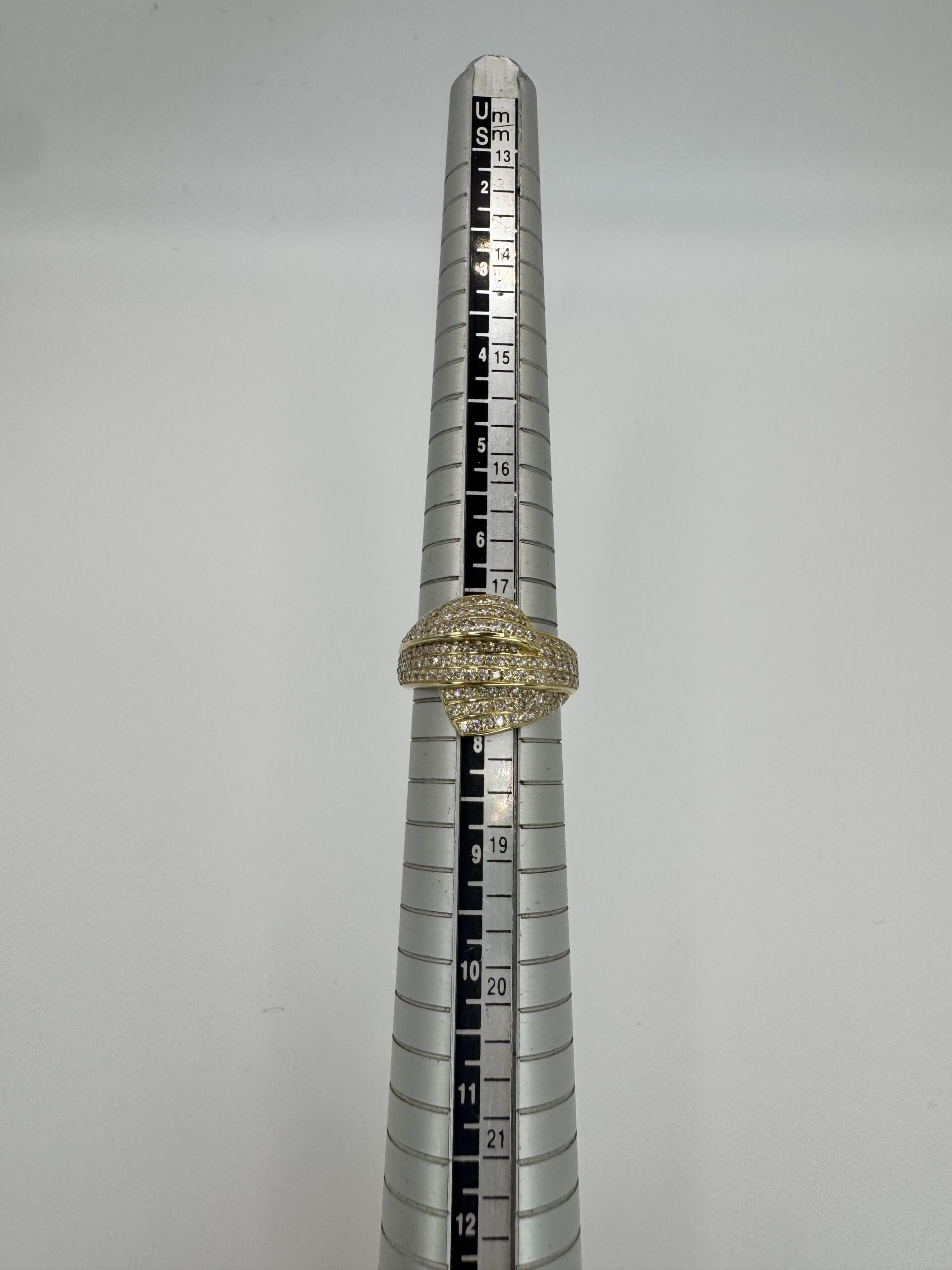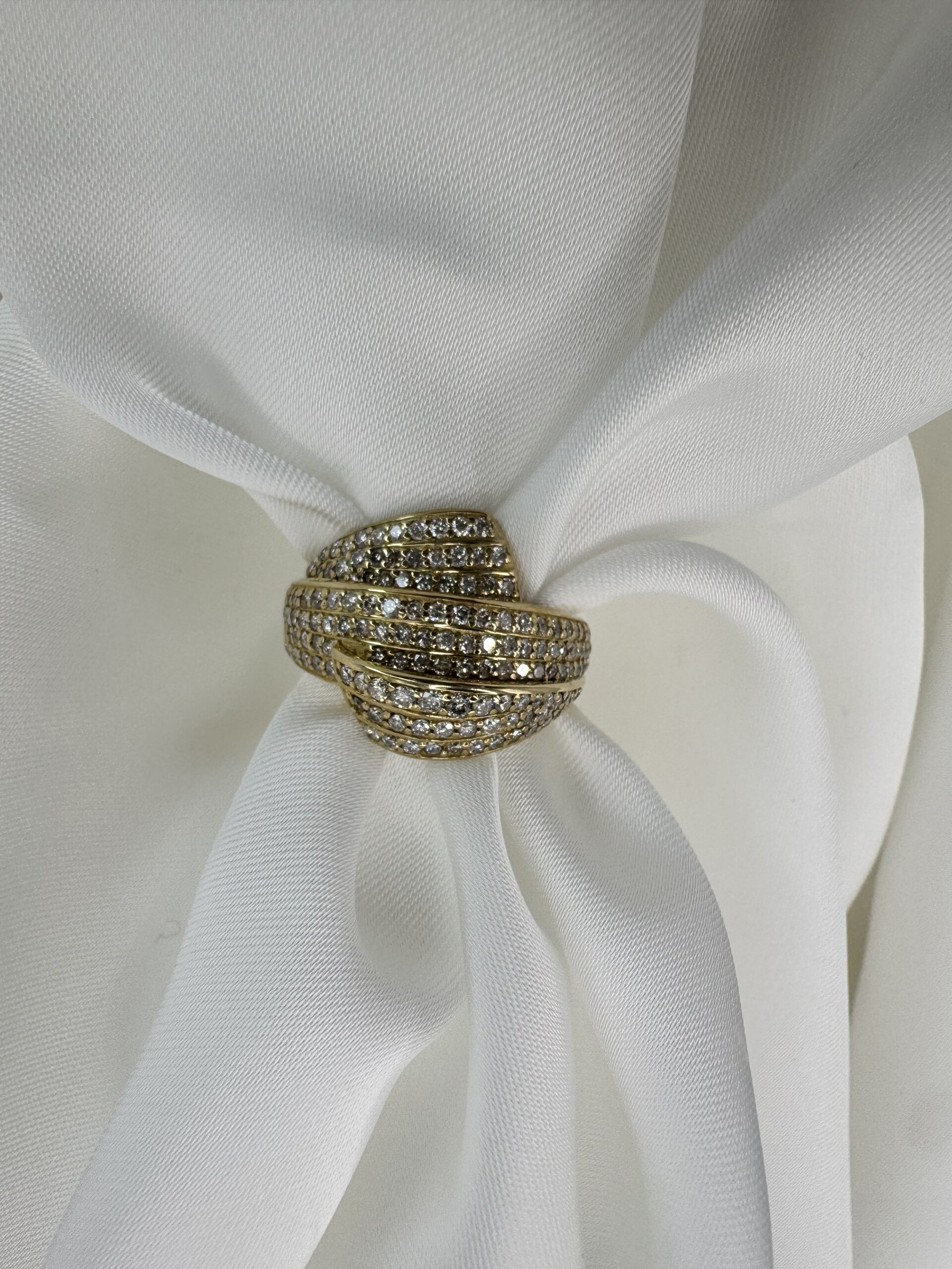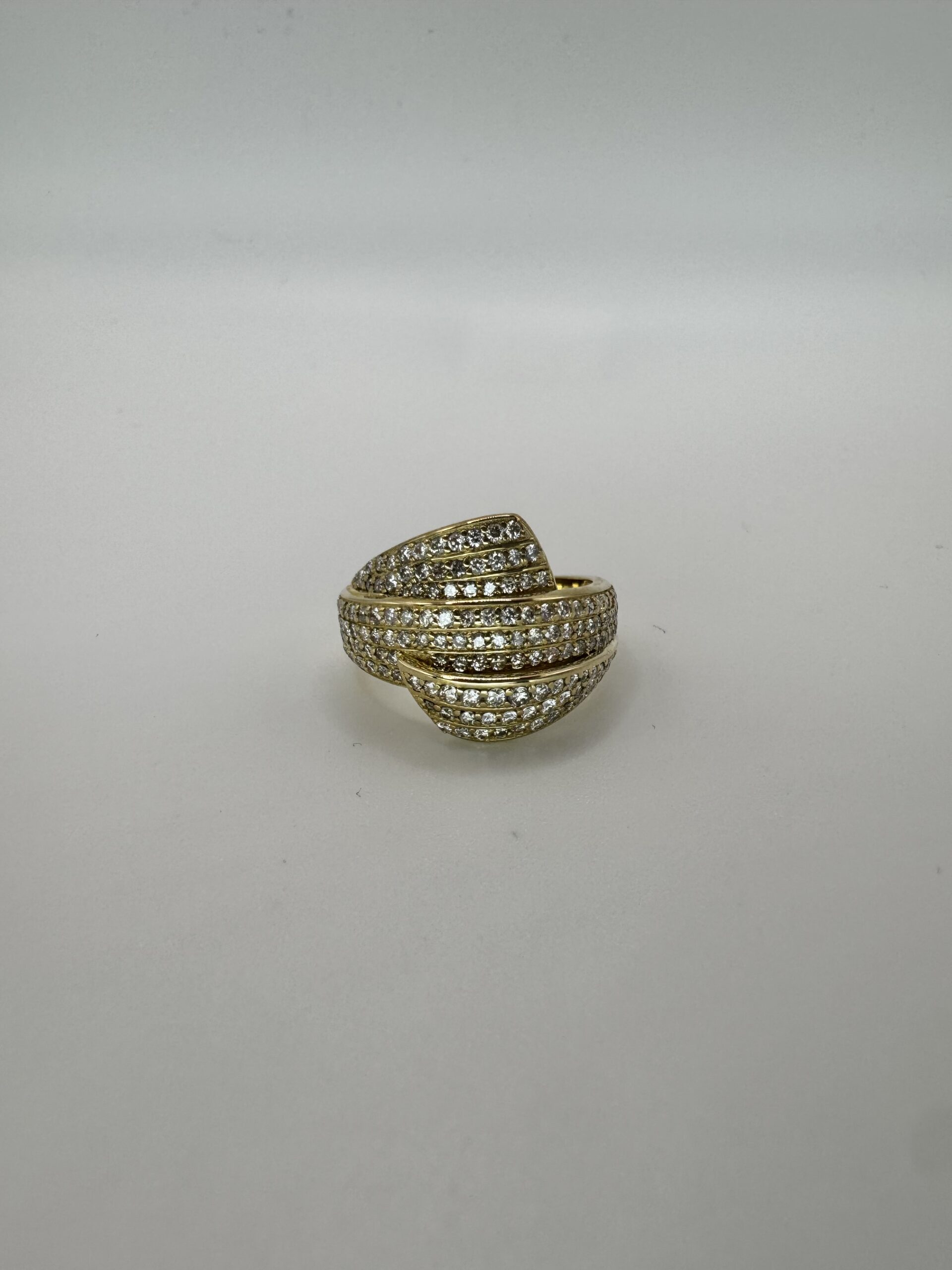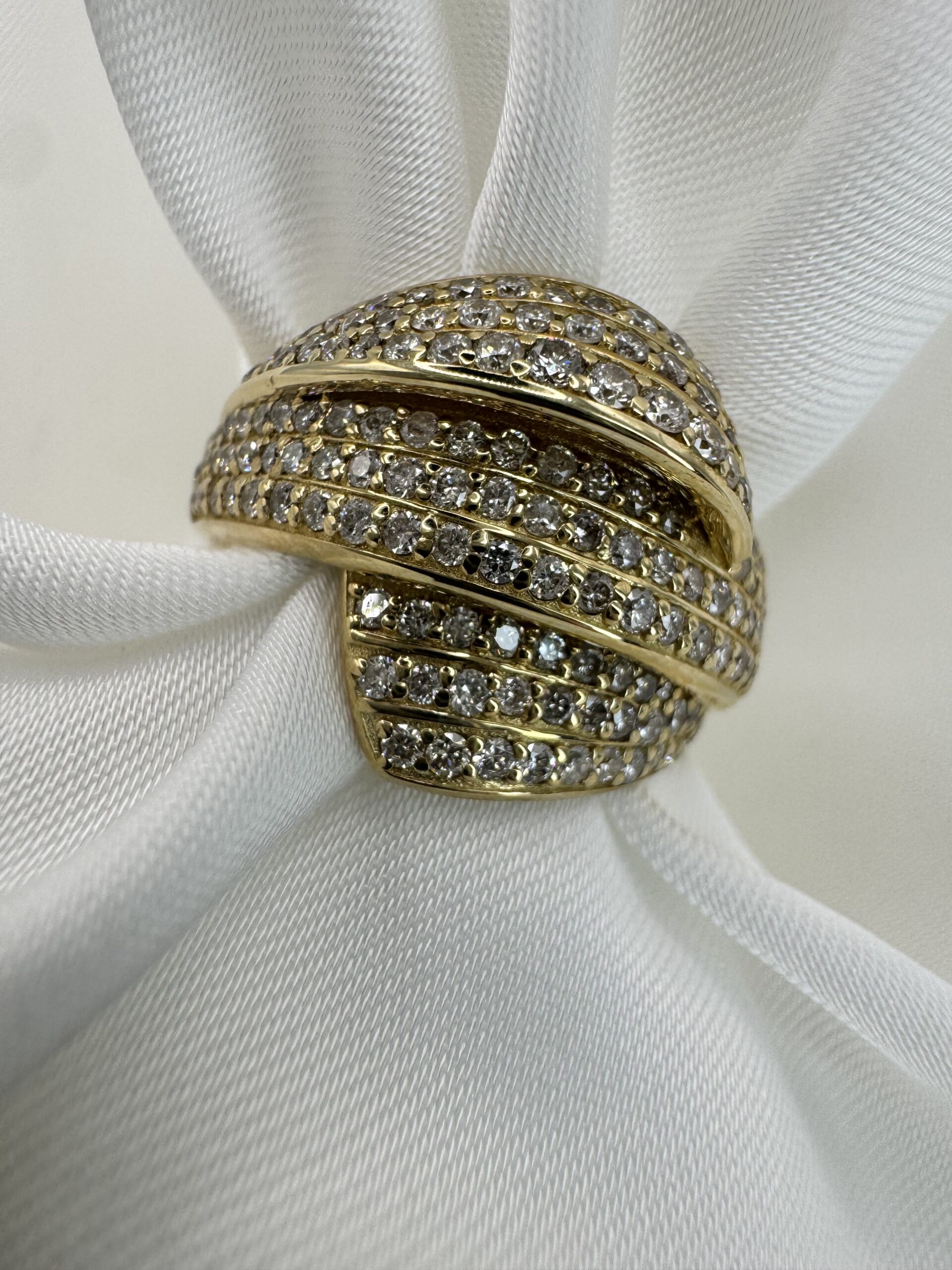 עיצוב מרהיב עם שורות יהלומים השזורות בזהב צהוב, שיוצרות מראה מלא ברק ועומק יוצאת דופן. שיבוץ צפוף של יהלומים לניצוץ מקסימלי. שילוב מושלם בין יוקרה לנועזות. טבעת שמיועדת למי שאוהבת לבלוט, להרגיש ייחודית ולהשאיר רושם בכל כניסה. מושלמת כמתנה בלתי נשכחת — או כפינוק יוקרתי לעצמך.
