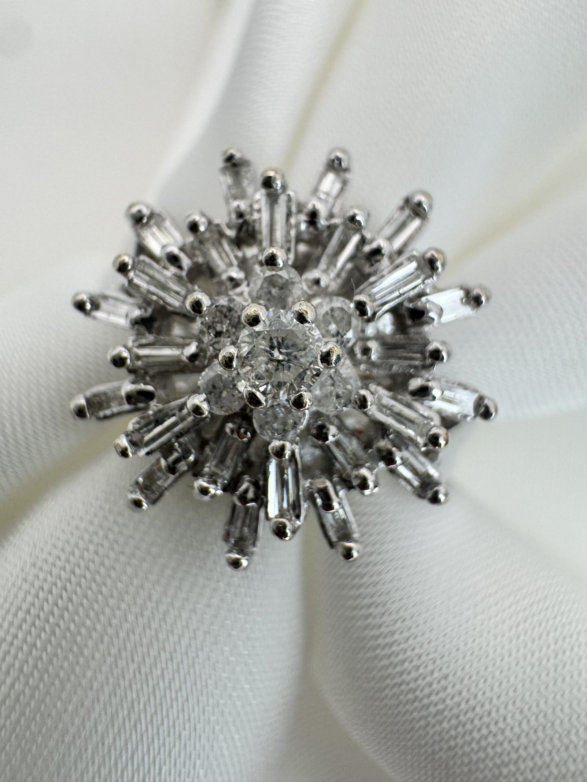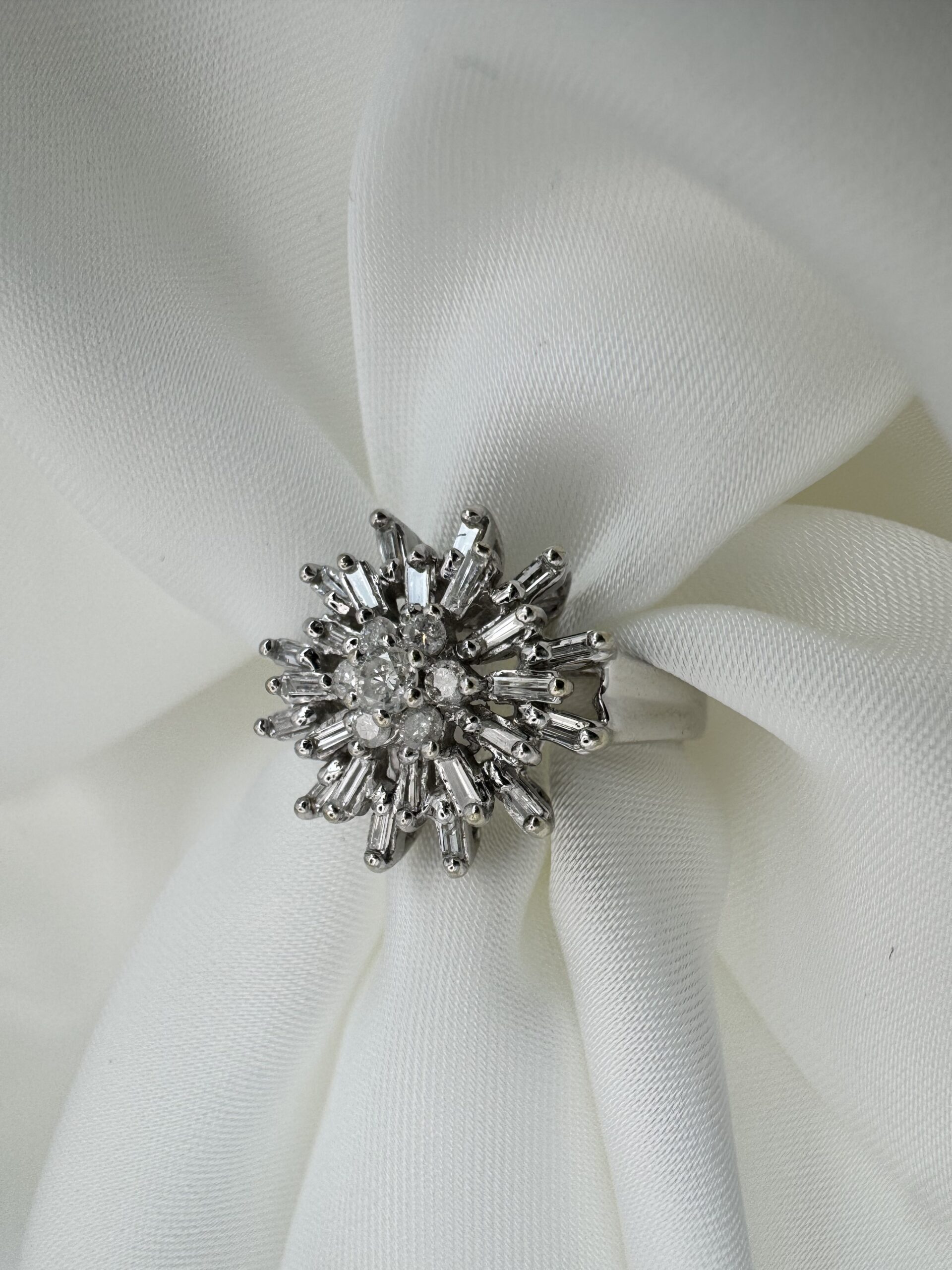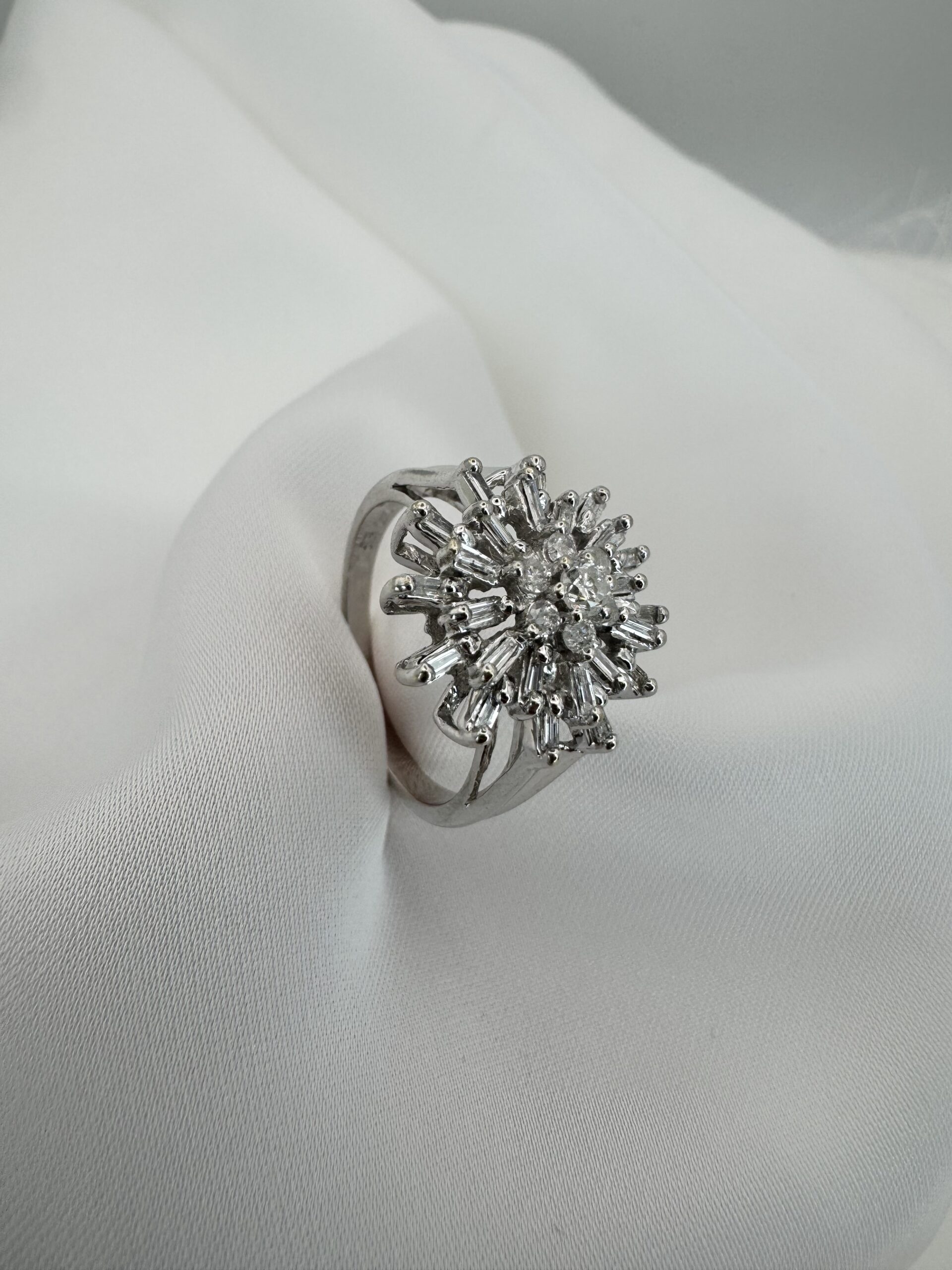 טבעת שלא מתעלמים ממנה. עיצוב פרח יוקרתי בשילוב יהלומי בגט ומרכז נוצץ שיוצר אפקט אור מרהיב בכל תנועה. היא מושלמת למי שאוהבת להרגיש מיוחדת, שונה, כזו שלא הולכת לפי כולם — אלא מובילה. טבעת שמרגישה כמו יצירת אמנות על היד, ומוסיפה נוכחות יוקרתית בכל רגע — ביום וגם בערב.